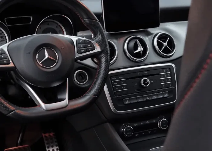 För den invändiga behandlingen börjar vi med en grov dammsugning av samtliga ytor. Kupén rengörs noggrant och vi använder lufttryck för att fräscha upp hela interiören. Vi tar bort enstaka fläckar och rengör instrumentbrädan för att den ska se ut som ny. Mattorna får en grundlig rengöring och vi använder ångmaskin för att desinficera och fräscha upp hela interiören. Plastdelar behandlas med vinylvax för att ge dem en snygg och skyddande yta. Slutligen putsar vi fönstren invändigt för att säkerställa en klar och ren insida.
